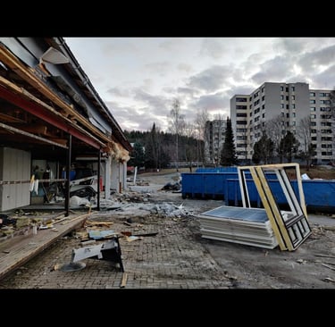 Kuvassa näkyy vanha Kortepohjan koulu ennen "pohjakosketusta". Ei hätää, kaikki kääntyi lopulta hyvin, ja nyt samalla paikalla seisoo uusi koulu. Toivotaan, että Rekamin kohdalla käy samoin.